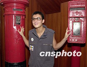 歌星陳冠希8月18日在香港出席新城電臺(tái)與香港郵政合辦《Edison聯(lián)fan集郵Teen》參觀郵政總局活動(dòng),對(duì)兩臺(tái)舊式郵筒頗具興趣。作者:鄧慶樂(lè)