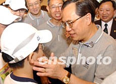 曾蔭權出席香港少年警訊滅罪夏令營活動,受到少年們的熱烈歡迎。中新社記者:錢興強