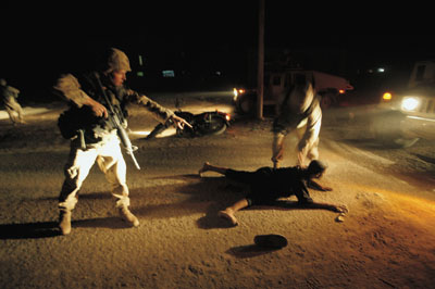 對美軍來說,另外一個重要的源是在巷戰(zhàn)中俘獲的伊拉克游擊分子。美國人會“蓄意”挑起沖突,請君入甕。譬如說,他們會將一輛沒有任何掩護(hù)的巡邏坦克開到可疑地區(qū)。伊拉克游擊分子見此“良機(jī)”,便會貿(mào)然出來行動。坦克手鎖定伊拉克發(fā)動進(jìn)攻的方位后,便迅速請求支援。美軍會包圍住整個街區(qū),特種分隊對游擊分子藏身之地發(fā)動強(qiáng)攻。當(dāng)然,所有被俘的伊拉克人都被認(rèn)為是薩達(dá)姆的“同黨”,是薩達(dá)姆資助他們進(jìn)行抵抗行動。所以,這些俘虜均被拷問,讓他們供出從何人手中得到買武器的錢!