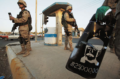 也就是在一個半月前,其時美軍已經(jīng)正式開始追捕時,又有人在巴格達(dá)城發(fā)現(xiàn)了他的蹤影。當(dāng)時巴格達(dá)已經(jīng)是相當(dāng)危險:盟軍在進(jìn)行不間斷搜查、機(jī)動車輛隨時都可都被擋截,大街上三步一哨,五步一崗,戒備森嚴(yán)。薩達(dá)姆想冒險通過老的走私通道潛入北方,畢竟那里的親朋好友會多一些。