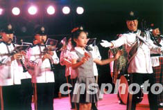 二十三日晚,參加福建·香港周活動的香港警察樂隊在福州演出時,特邀福州小朋友擔(dān)任樂隊指揮。作者:陳勇