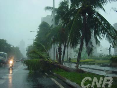 由于受到大范圍停電的影響,記者到八時三十分才能打開電腦寫稿,但是短短一篇稿件的撰寫中,卻經(jīng)歷了四次停電。記者一大早在中新社海南分社附近地區(qū)看到,今晨橫掃?诘摹翱屏_旺”在城市的樓宇中穿行,強(qiáng)大的氣流形成了類似乎警笛一樣的怪叫聲,整個城市處于一種莫名的氣氛中。