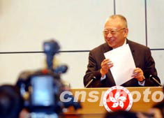 香港特首董建華8月28日在出席深港西部通道的奠基典禮后,在香港政府總部召開(kāi)記者會(huì),轉(zhuǎn)達(dá)國(guó)務(wù)院副總理曾培炎對(duì)港粵經(jīng)驗(yàn)合作的重視和對(duì)香港經(jīng)濟(jì)的支持。作者:洪少葵