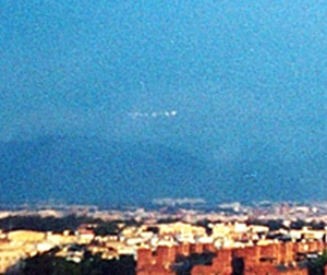 他們上樓后,在火星方位的東南方上下尋找火星蹤跡,由于天色仍亮,找不到火星,但突然在同方位的下方遠處;大溪鎮(zhèn)后方山區(qū)上空,發(fā)現(xiàn)一排發(fā)著金黃色光彩的橢圓形飛行物緩緩移動,方向由東南方往西前進,數(shù)量大約是10余架,有3架好象是帶頭的,一架在最前,后面兩只是上下排列,狀似三角形。帶頭的三架并一度90度轉彎消失,約三秒后又突然出現(xiàn)與機隊會合,隨后再整隊緩緩前進,消失在云霧中。