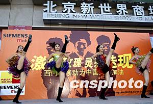 西門子移動(dòng)電話公司三十日舉行“萬人簽名為中國女足加油”活動(dòng),足球?qū)氊惥实奈璧副硌輰⒒顒?dòng)推向高潮。中新社記者:趙振清