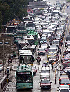 “杜鵑”臺風(fēng)給廣州帶來了狂風(fēng)暴雨,不少地方出現(xiàn)水淹現(xiàn)象,造成很多路段嚴(yán)重塞車。作者:梁永強(qiáng)