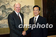 中新網(wǎng)北京9月3日電(記者齊彬)中國國務(wù)院總理溫家寶今天下午在中南海紫光閣會見了到訪的美國財政部長斯諾一行。