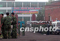 九月三日,河南洛陽(yáng)市伊川縣奮進(jìn)煤礦大門外戒備森嚴(yán)。該煤礦黃村分井在九月二日突發(fā)透水事故,16名工人被困井下。事故發(fā)生后,當(dāng)?shù)卣S即展開救援,但因困難較大,搶救工作進(jìn)展緩慢。作者:慎重