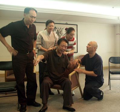 舞臺(tái)功力深厚的張喜前把原本喜劇色彩不太濃的大順設(shè)計(jì)得有聲有色。而老爺子張辛元11歲就拜師學(xué)曲藝,說(shuō)學(xué)逗唱一身的絕活。這次在劇中扮演的劉大爺?shù)膽蚍莘浅V,而在排練中,性格開(kāi)朗的老張也常常是戲里戲外制造笑聲的關(guān)鍵人物。