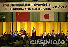 日本首相小泉純一郎、日本參眾兩院議長和日本各界人士1500多人出席了招待會。這一招待會是由中國駐日本大使館、日本外務(wù)省和日中友好協(xié)會、日本國際貿(mào)易促進協(xié)會、日中友好議員聯(lián)盟等七個日中友好團體聯(lián)合舉行的。(孫建和、藍(lán)小芹、張暉)