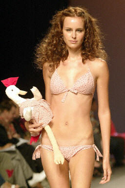 9月8日,在西班牙巴塞羅納舉行了2004時(shí)尚春夏裝展示,模特現(xiàn)場展示了西班牙設(shè)計(jì)師TCN Toton Comella的性感比基尼。