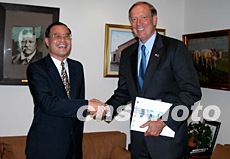 中國駐紐約總領(lǐng)事劉碧偉(左)到任剛好一個(gè)月。九月八日下午,他前往州長辦公室拜會(huì)了紐約州長帕塔基。劉碧偉表示,歡迎柏塔基州長在方便的時(shí)候訪華。中新社記者:陳建