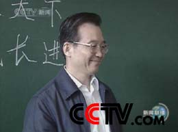 最后,溫家寶來到著名的北京第二實(shí)驗(yàn)小學(xué),到教研室看望教師,向他們祝賀節(jié)日。在五年級(jí)教研室里,他看到墻上寫著“用百分之百的熱情去解決百分之一的問題”,當(dāng)即用筆記下來,并連聲稱贊這句話好。