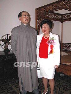 孫中山大元帥府紀念館全面開放暨門樓修建落成典禮儀式,十日在廣州孫中山大元帥府舊址舉行,孫中山的孫女孫穗芳專程回穗?yún)⒓釉擁椈顒,并在館內(nèi)與祖父的塑像合影留念。作者:劉衛(wèi)勇