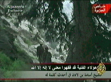 據(jù)總部設(shè)在卡塔爾的半島電視臺稱,從剛剛在半島電視臺播放的本拉登和扎瓦赫里的錄像帶來看,他們二人似乎是在一個“無法確定具體位置的山區(qū)”錄制的這盤錄像帶,這盤錄像帶很有可能是今年4月底或5月初時錄像的。此外,半島電視臺還播放了扎瓦赫里的錄音帶,但半島電視臺沒有講明這盤錄音帶錄制的具體時間,如果這盤錄音帶被證實是真實可信的話,這將會使此前有關(guān)扎瓦赫里已經(jīng)在伊朗被捕的傳言不攻自破。