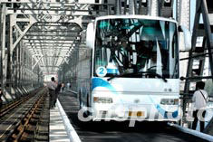 鴨綠江“中朝友誼橋”公路橋中方一側(cè)修復(fù)工程九月中旬竣工并恢復(fù)通車(chē)。該橋是中朝邊境主要陸路通道,修整后的公路橋面承重能力將由原來(lái)的十噸提升至二十噸。圖為滿載中國(guó)游客的大客車(chē)通過(guò)丹東鴨綠江大橋的情形。中新社記者:王麗南