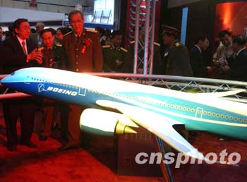 由波音民用飛機(jī)集團(tuán)展出的波音7E7超效飛機(jī)是第一款具有遠(yuǎn)程直飛能力的中型飛機(jī),航速可與當(dāng)今最快的寬體飛機(jī)波音747相當(dāng),最多可容納400名乘客。航空公司可利用它為不適合使用大型飛機(jī)的遠(yuǎn)程航線提供不經(jīng)停服務(wù)。目前正處于研發(fā)階段,2005年投入生產(chǎn),2007年進(jìn)行首次飛行認(rèn)證。波音預(yù)計(jì),在未來(lái)20年間,全球市場(chǎng)將需要2000到3000架波音7E7。