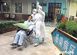 中新社廣州九月十八日電(王華溫志勤)暨南大學(xué)附屬一院(廣州華僑醫(yī)院)今日下午四時半,進(jìn)行了廣東省首次SARS疫情應(yīng)急模擬演習(xí)。演習(xí)分為三部份,主要檢驗(yàn)醫(yī)療機(jī)構(gòu)對SARS的應(yīng)急反應(yīng)能力。