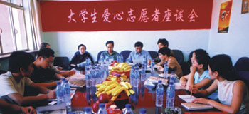 10日下午,太陽星城愛心之旅采訪團抽身回京,與北京大學(xué)、清華大學(xué)等京城十余所著名大學(xué)的愛心志愿者面對面,聆聽學(xué)子們對于愛心的理解。