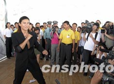 十九日,藝人吳奇隆在東莞出席廣東電視臺《名捕震關(guān)東》首影新聞發(fā)布會。作者:劉衛(wèi)勇