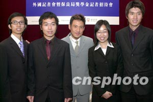 張學(xué)友與四名獲得獎(jiǎng)學(xué)金得主于會(huì)上合照。作者:鄧慶樂