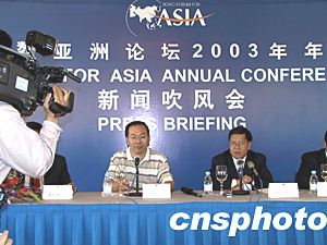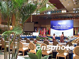 中遠(yuǎn)集團(tuán)投資建設(shè)的博鰲亞洲論壇永久會(huì)址——博鰲亞洲論壇國(guó)際會(huì)議中心,將于二十二日揭幕。該中心位于博鰲東嶼島,建筑面積為三萬(wàn)七千平方米,共有大小十六個(gè)設(shè)施先進(jìn)的會(huì)議廳,主會(huì)場(chǎng)可以容納二千五百人。這是即將在明天召開(kāi)“今日博鰲亞洲論壇:回顧與展望圓桌會(huì)議”會(huì)場(chǎng)。中新社記者關(guān)向東攝