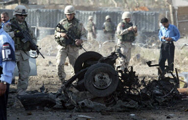 這位美軍發(fā)言人說(shuō),一名伊拉克保安人員以及襲擊者本人被當(dāng)場(chǎng)炸死。伊拉克警方和美國(guó)聯(lián)邦調(diào)查局特工已對(duì)這起爆炸事件展開調(diào)查,目前他們還沒(méi)有查到這起事件的制造者以及背后主謀。