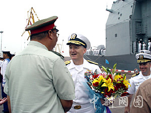 被稱為“神州第一艦”的導彈驅逐艦深圳號,承擔了引導美艦進港的任務。22日早些時候,深圳艦與美海軍艦艇編隊在預定地點會合,引導美艦進入中國十大港口之一的湛江港。深圳艦按照中國海軍規(guī)定懸掛“WTC”英文字母國際旗語,表示“歡迎到訪中國”。接著,掛有美國國旗和中國國旗的“考彭斯”號和“范德格里夫特”號在深圳艦之后慢慢進入了湛江港。