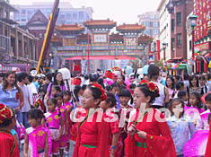 此次由大華盛頓地區(qū)一百多個(gè)華人社團(tuán)聯(lián)合舉辦的中國(guó)文化節(jié),除了有中國(guó)文化工藝展覽和中華美食節(jié)外,最引人注目的是周日下午在唐人街舉行的盛大游行。醒獅起舞、大型花車、武術(shù)功夫、魔術(shù)雜技、民族盛裝、歌舞表演,吸引了數(shù)千華人、當(dāng)?shù)厥忻窦坝慰。特別是廣東省僑辦贈(zèng)送的一條長(zhǎng)達(dá)七十米、需要三十四人共同舞動(dòng)的巨龍,在唐人街上翻騰跳躍,把節(jié)日氣氛帶向高潮。