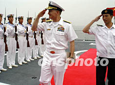 9月23日,率領美國艦艇編隊訪問湛江南海艦隊的凱利將軍在南海艦隊參謀長侯月喜將軍陪同下,參觀中國“深圳”號導彈驅逐艦和“玉林”號導彈護衛(wèi)艦。作者:韓海冰