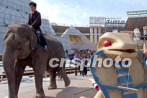 圖:大型景觀歌劇《阿依達》動物演員彩排