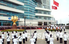 中新社香港十月一日電(記者方青木)香港百多個團體一萬多名市民今日早上參加了“國慶歡樂大巡游”,通過各種表演活動,表達他們對祖國的祝福,為國慶節(jié)日的香港增添了許多喜慶氣氛。據(jù)了解,這是香港回歸后,首次最大型、最具特色及最多人參與的巡游活動。