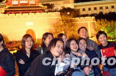 十月一日十國(guó)慶長(zhǎng)假第一天,當(dāng)晚有數(shù)萬游客在北京天安門廣場(chǎng)觀看夜景。中新社記者:盛佳鵬