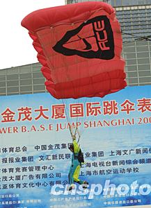 世界頂級(jí)高樓跳傘運(yùn)動(dòng)員如雄鷹展翅般從中華第一高樓上海金茂大廈的八十八層平臺(tái)縱身飛躍,驟然降落,那一朵朵色彩紛呈的傘花飄逸而下,博得在場(chǎng)觀眾的陣陣喝彩。今日有著“中華第一跳”美稱的上海金茂大廈高樓跳傘著實(shí)讓一向見多識(shí)廣的申城市民大開眼界,隨著跳傘表演的如期舉行,一切相關(guān)的懸念也隨之揭開了神秘的面紗。