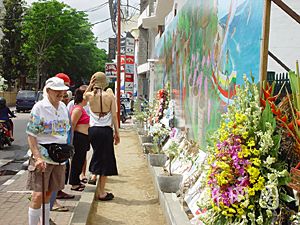 時隔一年,前來這里報道東盟系列峰會的本社記者踏訪爆炸案現場,追尋恐怖主義的罪惡,感受人們對和平的渴望。遠遠望去,在鱗次櫛比的商店旅館中間,有一片用木板和鐵柵欄圍起的空地,格外顯眼。當記者的采訪車剛剛停下,一位身材壯實的警察即走上前來,用不太流利的英語向記者介紹爆炸發(fā)生時的慘狀。