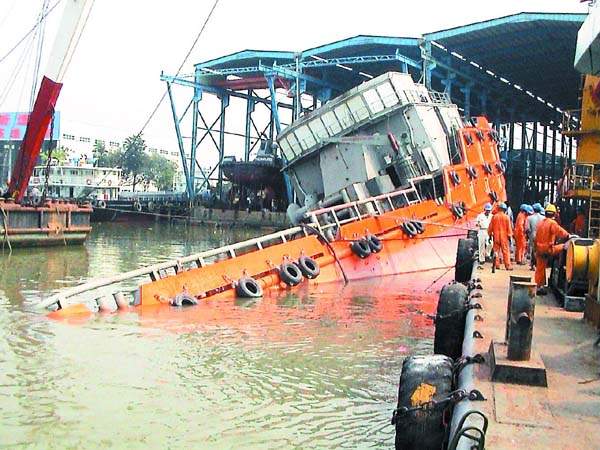 根據(jù)船舶資料顯示,該船空船重量達(dá)到1120噸,因為沉沒在珠江內(nèi)河,大型打撈船舶設(shè)備無法進(jìn)入,給打撈工作造成很大困難。根據(jù)可用的船舶設(shè)備情況,打撈局采用穩(wěn)定難船、封艙抽水、使難船自浮的整體打撈方案。首先用300噸浮吊及潛水作業(yè)母船穩(wěn)定住沉船浮態(tài),對其進(jìn)行必要的加固,防止其繼續(xù)下滑和左傾加大;慢慢移開左舷的浮船塢,然后水下封堵有關(guān)的孔蓋、海底閥及主甲板上的工藝開口,然后用潛水泵抽出船內(nèi)積水,使難船自浮,調(diào)整浮態(tài),現(xiàn)場交船。(幸琦昕許力夫張健文)