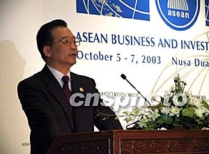 首屆東盟商業(yè)與投資峰會(huì)十月七日在印尼巴厘島舉行,中國(guó)國(guó)務(wù)院總理溫家寶出席會(huì)議并發(fā)表題為《中國(guó)的發(fā)展和亞洲的振興》的演講,來自中國(guó)、東盟以及世界其他地區(qū)的三百多名企業(yè)家聽取了演講。中新社記者:齊彬