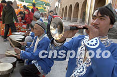 圖:維吾爾族樂(lè)手助興烏魯木齊商業(yè)區(qū)