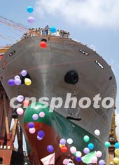 中新社上海十月九日電(記者褚婷婷)為適應(yīng)運(yùn)輸輕軌列車等大型設(shè)備的需要,載重三萬噸的多用途重吊貨輪——“中波明月”號,今天中午在上海船廠二號船臺下水。據(jù)悉,這種貨輪是當(dāng)今世界件貨航運(yùn)市場上最先進(jìn)、規(guī)模最大的運(yùn)輸工具,它的建成及不久后的投入營運(yùn),將有力提升中國在世界雜貨運(yùn)輸航線上的競爭力。