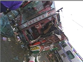 中新網(wǎng)10月14日電 臺北縣樹林育林高中畢業(yè)旅行的游覽車,14日上午與南下的臺鐵列車在鶯歌鎮(zhèn)中正路平交道發(fā)生車禍,造成3名學生不幸死亡,38名學生受傷,分別送往三家醫(yī)院急救。