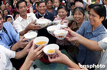 輔翼村的鄉(xiāng)親們用各種方式表達(dá)對航天載人工程的功臣黃春平的熱愛和慶賀,村里會(huì)用毛筆的幾個(gè)人,昨天都在揮毫潑墨,一條歡呼“神舟”五號發(fā)射成功的大紅標(biāo)語掛在村大禮堂前。四條紅色喜聯(lián)也被敲鑼打鼓的人送到了黃春平的家中。黃春平的弟弟妹妹們這幾天一直沉浸在幸福的喜悅中。黃春平的弟弟黃春光把精心釀制的一壇青紅酒端出來讓鄉(xiāng)親們喝,共同分享他家的歡樂。