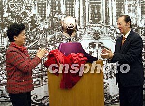 十月十六日,流失海外的圓明園國寶“豬首”銅像回到中國,與牛首、猴首、虎首三件銅像在失散143年之后團(tuán)聚。國寶“豬首”銅像由何鴻燊博士捐款600多萬元自海外搶救歸來,由保利藝術(shù)博物館永久收藏,并將于十八日在圓明園免費(fèi)公開展出。中新社記者:張宇