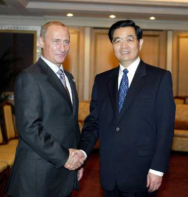 普京表示完全贊同胡錦濤對當(dāng)前兩國關(guān)系的看法。他說,《俄中睦鄰友好合作條約》為俄中發(fā)展新世紀(jì)戰(zhàn)略協(xié)作伙伴關(guān)系奠定了法律基礎(chǔ)。俄中關(guān)系發(fā)展順利,雙邊貿(mào)易增長迅速,在國際事務(wù)中的磋商、協(xié)調(diào)和合作不斷擴(kuò)大。從各方面看,俄中兩國關(guān)系中不存在任何不能解決的問題和障礙,所需要的就是更好、更快地開展友好合作。普京還熱烈祝賀中國成功進(jìn)行首次載人航天飛行。