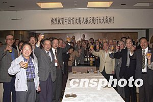 日本東京地區(qū)華僑21日在東京華僑總會舉行慶祝會,慶賀祖國首次載人航天大獲成功。中新社記者:王健