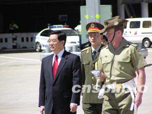 胡錦濤主席檢閱了澳大利亞三軍儀仗隊,并發(fā)表了書面講話。