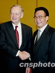 吳邦國表示,中國全國人大愿進(jìn)一步加強(qiáng)與加拿大參、眾兩院的交流和合作,為促進(jìn)兩國關(guān)系的發(fā)展繼續(xù)作出努力。