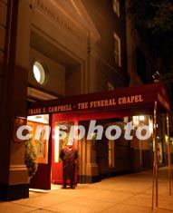 二十三日深夜在紐約家中去世的宋美齡遺體,二十四日被安放到曼哈頓八十一街和麥迪遜大道交界處的弗蘭克坎貝爾殯儀館。 作者:龔文謨