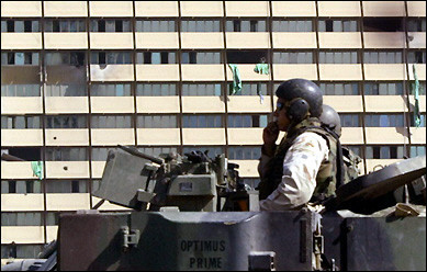 象征美軍權(quán)力的拉希德酒店遭明目張膽地襲擊,進(jìn)一步動(dòng)搖美國穩(wěn)定伊拉克的努力,伊拉克人指這與華府不把權(quán)力交還給伊拉克人有關(guān)。(據(jù)香港文匯報(bào))