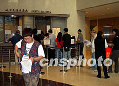 中國首名航天員楊利偉 31日到香港訪問六日。29日6時開始,在大會堂、科學館等18個地點,免費派發(fā)6萬張航天展入場券,每人限取兩張。圖為清晨6時許位于葵青劇院已有市民排隊輪候。作者:譚達明