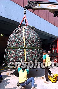 組圖:"神舟"五號(hào)飛船展品運(yùn)抵香港科學(xué)館